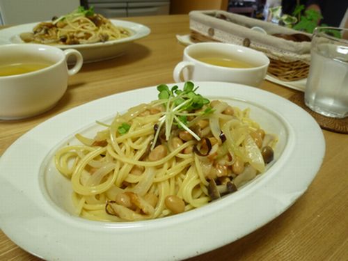 ☆★とろける納豆パスタ★☆ by RIE:レポとフツーのコンソメスープ(カレー風味)