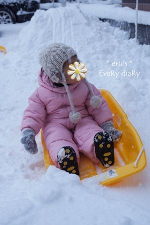 私が娘を抱き上げてソリに乗せるから結構重労働。。。