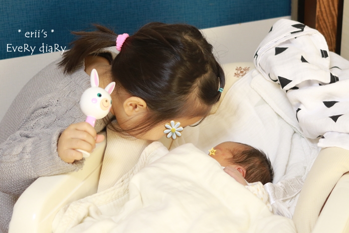 娘が弟に選んであげたガラガラを使う時が来た(*´艸`)♪
