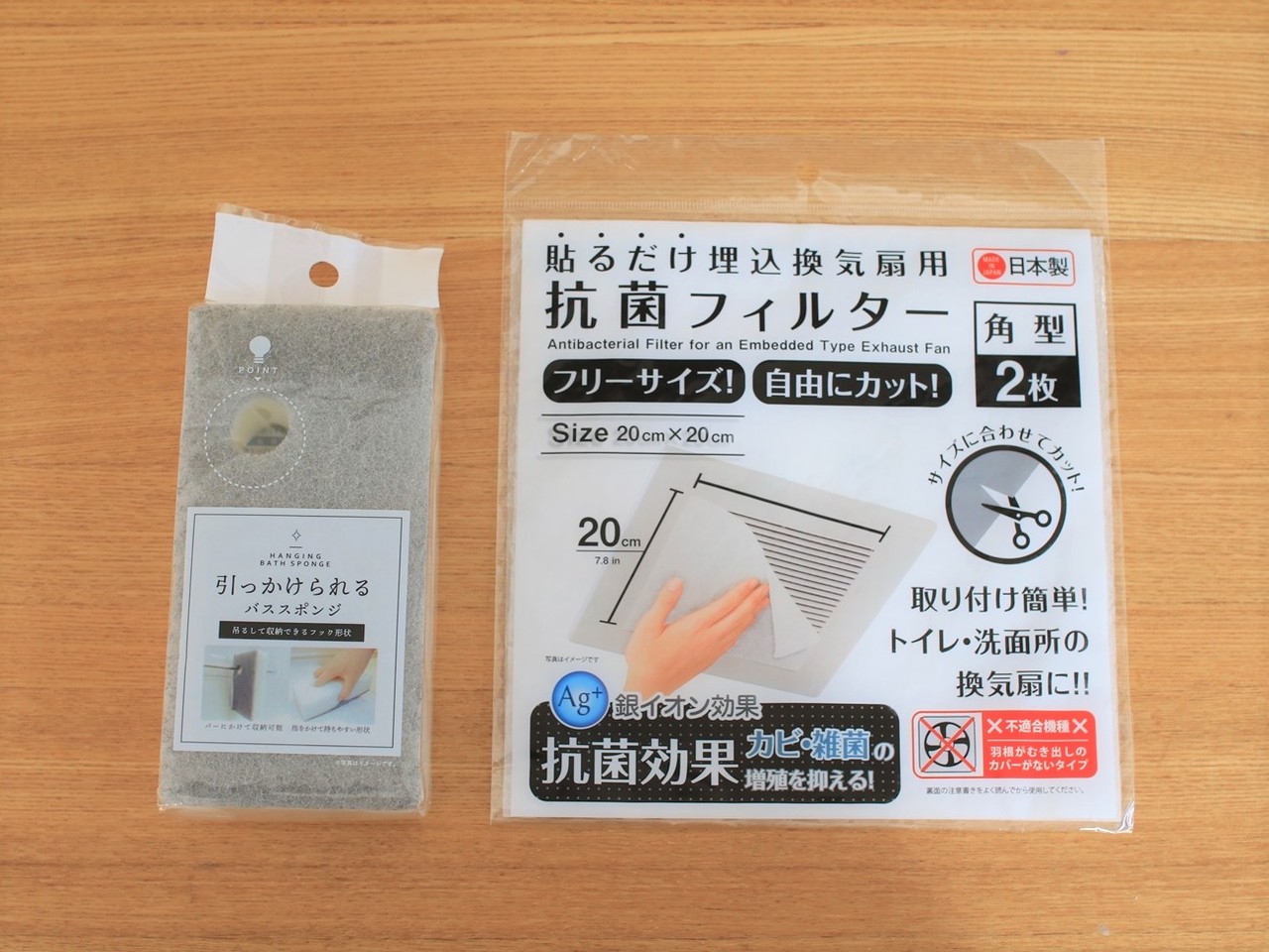 引っかけられるバススポンジと換気専用抗菌フィルター