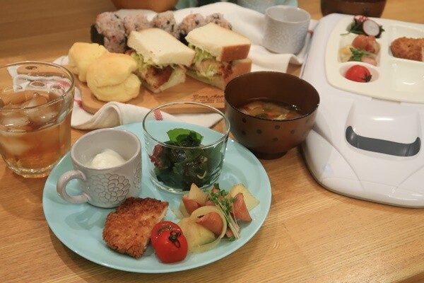 食パン2枚・スコーン2個・冷凍コロッケ1個・チキンカツ1個。