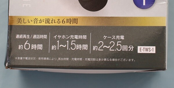 イヤホン充電時間:約1~1.5時間