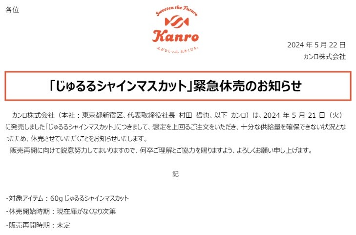 販売休止になったんだって!