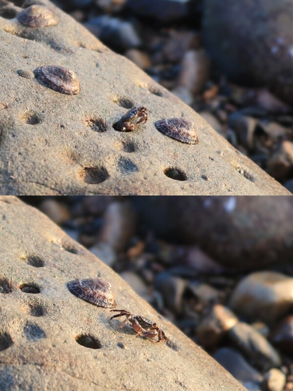 石の穴に隠れてたカニが出てきた!