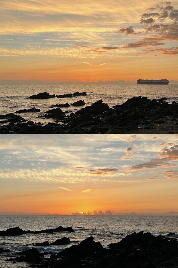 (直前に船が通って、日の出と丸かぶりするんじゃないかと