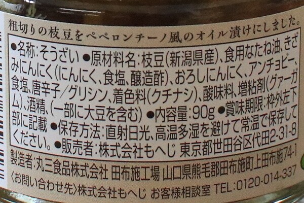 粗切りの枝豆をペペロンチーノ風のオイル漬けにしました。