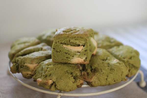 抹茶とホワイトチョコのスコーンを作りました(*^^*)