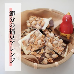 【福豆チョコ】余った福豆を今年もアレンジ! 2026年02月05日 カテゴリ: おいしいもの 節分の豆まきで使った福豆を今年もリメイクしました!去年までは溶かしたチョコに福豆を絡めてチョコクランチにしてたんだけど今年は違う感じで作ってみた!板チョコを2枚準備▼半分に切って市松模様に並べる。120℃に予熱したオーブンで2分→様子を見て1分で溶かしました!
