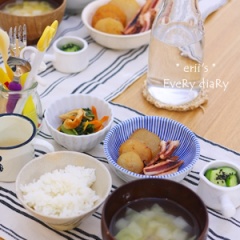 【幼児食】11/18~11/20* スタミナスープ。 2015年12月03日 カテゴリ: *3歳~ 11月18日(水) 【幼児食】 3歳2ヶ月* ③17:10 ・ごはん ・大根とイカの煮物 ・小松菜とちくわとにんじん煮 ・即席きゅうり漬け ・具だくさん味噌汁 ~ 今日のデキゴト ~ 「まてまてーー」←蝶々を追いかけてます。 すべり台から実を転がして絵の中に入ったら成