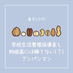 【息子(小3)】食物アレルギーの申請と物価高には勝てない(?)アンパンマン 2026年01月22日 カテゴリ: 息子のこと 9歳~ おいしいもの ナッツアレルギーのある息子(小3)。食物アレルギーの申請をしなきゃいけないので毎年この時期になると来年度の学校生活管理指導表(アレルギー疾患用)を提出しなきゃいけません。ちなみに給食で息子が「除去食」になるのは年1回、栗ごはんの日だけです。ということで今年も小